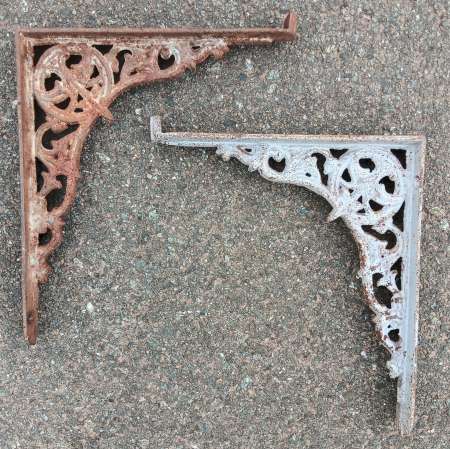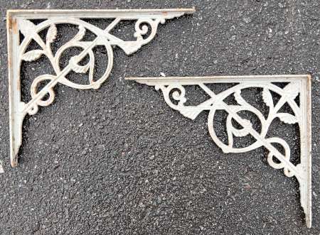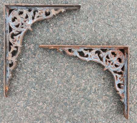 A pair of reclaimed cast iron brackets.