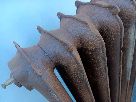 A very large Victorian cast iron wall vent with some original paint. 690mm in diameter x approx. 40mm in thickness. NB. Backplate does not currently rotate but I believe could be made to do so. £495 Ref: AMX001 |