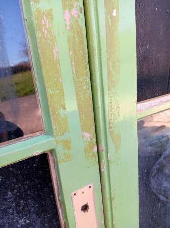 A set of 3 matching reclaimed doors with no beading to their panels. A : 1897mm x 625mm x 34mm – slightly bowed B : 1916mm x 628mm x 34mm – slightly bowed C : 1915mm x 625mm x 34mm. Ideal as wardrobe / cupboard doors or potential to make into a room divider. £495 DDX010 (CDX026) |