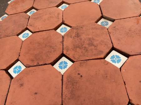 Reclaimed Victorian octagonal 6″ quarry tile floor with 1 7/8″ square inserts.