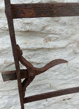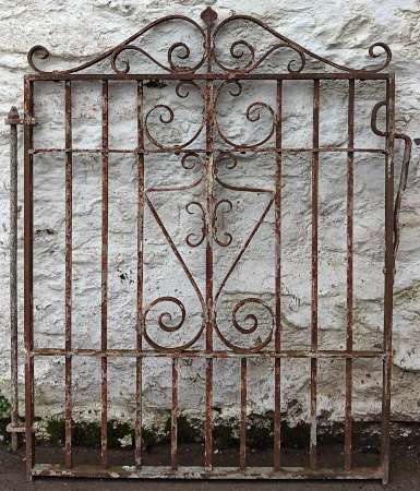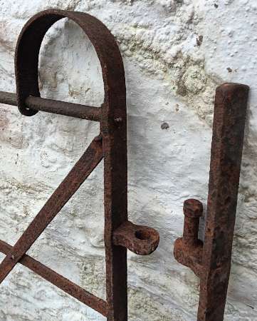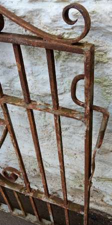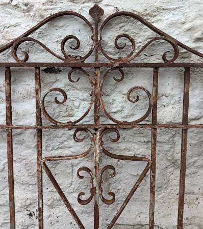 A very nice early blacksmithmade wrought iron garden gate. 1180mm in width inc. hinge but not latch x approx. 1190mm in height once fitted. Sympathetically restored having had a few repairs made and a new traditional sprung latch fitted whilst retaining as much of it’s original patina as possible. £795 GRX038 |