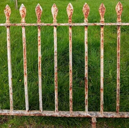 Heavy duty Victorian wrought iron railings with large cast iron finials.