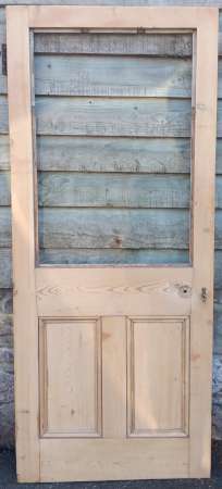 A part glazed Victorian 4 panel pine door – currently unglazed.